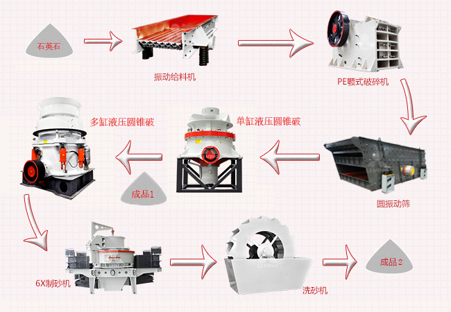 經(jīng)典的石英石制砂生產(chǎn)線流程圖